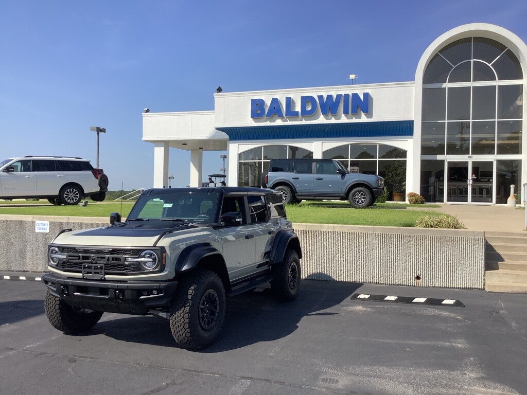 Raptor Black Appearance Package: Gloss Black Sideview Mirror Skull Caps; 17 Dark Carbonized Gray Alloy Painted Wheels; Interior Carbon Fiber Pack. Equipment Group 374A Lux Package: Engine: 3.0L EcoBoost V6; 10-Speed Automatic Transmission; 37 X 12.5R17 All-Terrain Tires; B&O Sound System by Bang and Olufsen. Ford Integrated Tether System (FITS) Accessory Package: Bronco-Branded Console Cupholder. Leather-Trimmed/vinyl Bucket Seats. 17 Dark Carbonized Gray Alloy Painted Wheels. Interior Carbon Fiber Pack. Shadow Black Painted Hard Top. Black Appearance Raptor Side Graphic. Desert Sand. Desert Sand. **Equipment listed is based on original vehicle build and subject to change. Please confirm the accuracy of the included equipment by calling the dealer prior to purchase.**